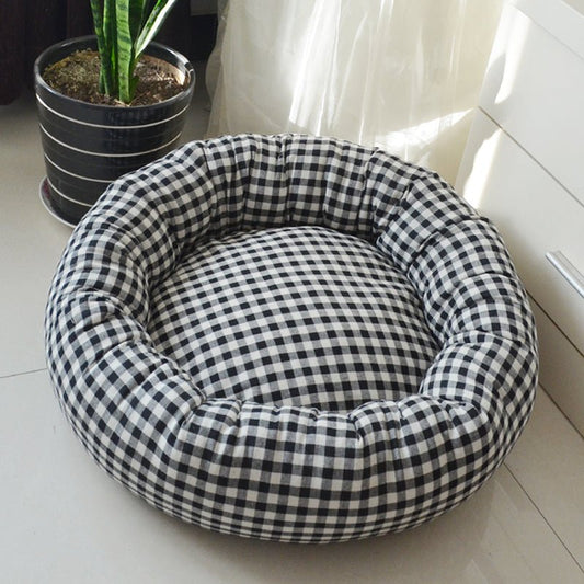 Panier pour chat chaud et douillet, motif vichy, déhoussable et lavable